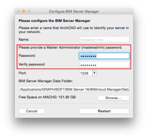 masteradminユーザーは、BIMサーバーのインストール時に設定されます。 このユーザーはトラブルシューティングのために作成され、BIM Server Managerへのフルアクセス権があります。