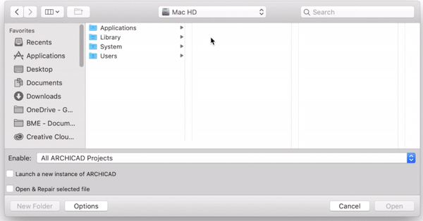 ARCHICAD内のオプションを選択してファイルブラウザダイアログを開く(例.開く、名前を付けて保存、図面を配置、等)と、ナビゲートで5-10秒の遅延が発生する場合があります。ビーチボールのカーソルが表示されずに、ARCHICADが数秒間反応しなくってしまいます。