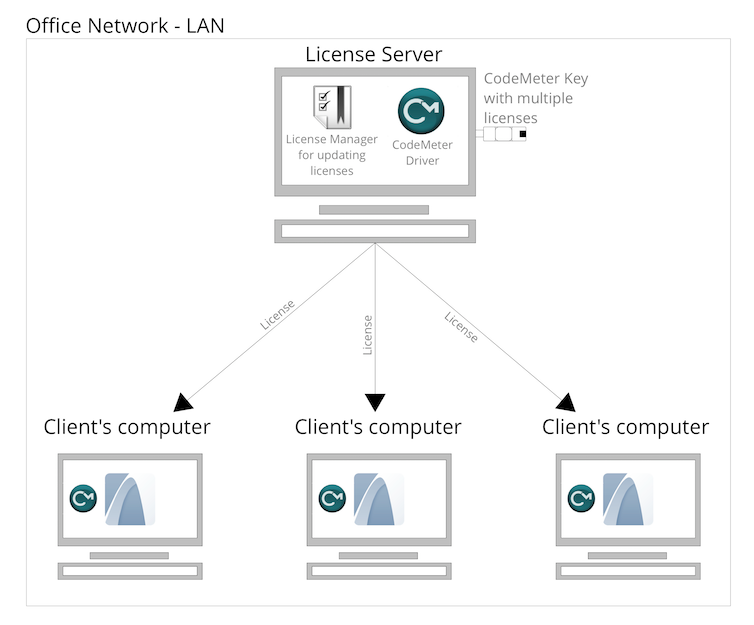 ライセンスを使用するには、CodeMeterドライバをサーバー側とクライアント側の両方で実行する必要があります
