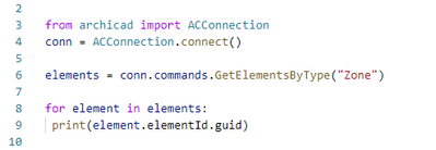 I've been starting to dive into the Python integration in order to put up a few routines regarding zone information in our firm. I'm a little bit familiar with the programming language itself, but I'm clueless on how to get the info from the elements.