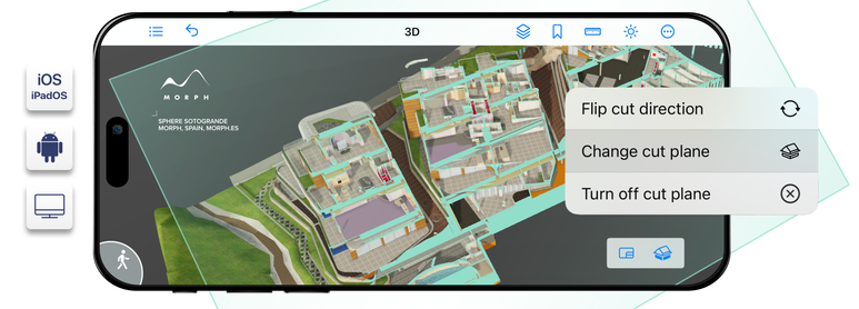 Then, open the cut plane context menu with long tap on mobile or right/long click on desktop:
