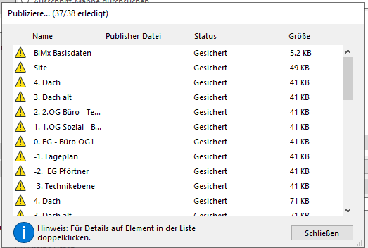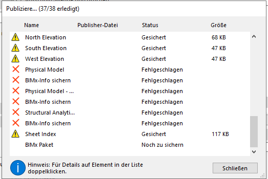 es werden in das BIMx Publisher-Set keine Ausschnitte von Grundriss, Schnitten und Ansichten hinzugefügt. Es sollten nur 3D-Ausschnitte in das Publisher-Set gelegt werden. Es müssen also alle Grundriss-, Schnitt- und Ansichts-Ausschnitte gelayoutet werden.