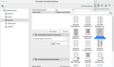 Um das Paneel zu verwenden, gehen Sie im Fassadenwerkzeug auf den Unterpunkt Paneele und wählen Sie Fassaden Eigenes Paneel.