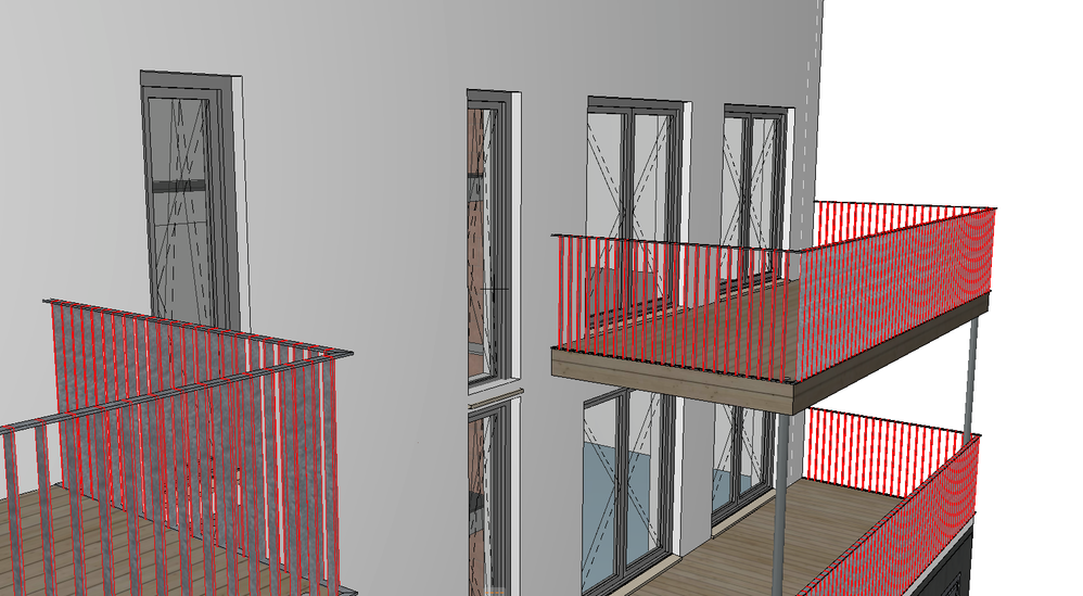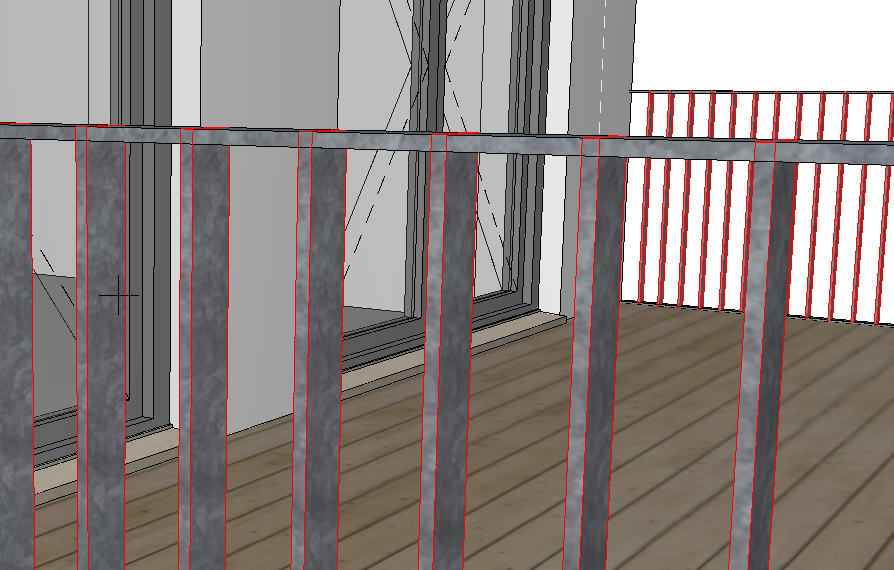 Die Geländerstäbe zeigen immer eine rote Kontur, obwohl ich: