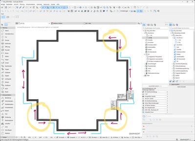 Ich möchte 2,7 m hoch Schiebetüren an roten Linien und 2,7 m hoch Eckfenster an blauen Linie einbauen. Ich habe das Schiebefenster aus der Bibliothek heruntergeladen, kann die Fensterseite aber nicht auf eine Ecke umstellen. Die Wandhoch ist 3m und ich möchte nur ein paar Eckfenster einbauen. Ich habe den ganzen Tag gesucht. Wer weiß, bitte bitte hilf mir.