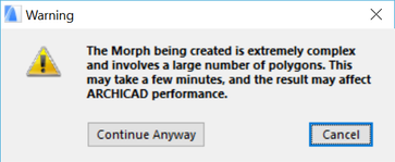 - If the imported geometry is very complex it may affect the performance of Archicad. The following warning dialogue indicates this: