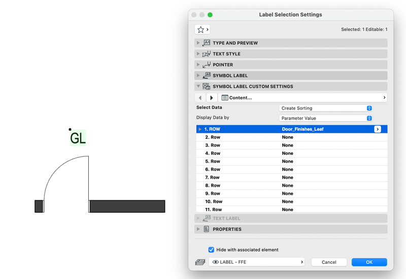 - Select a door element from your project as a reference and transfer its properties to the right column.