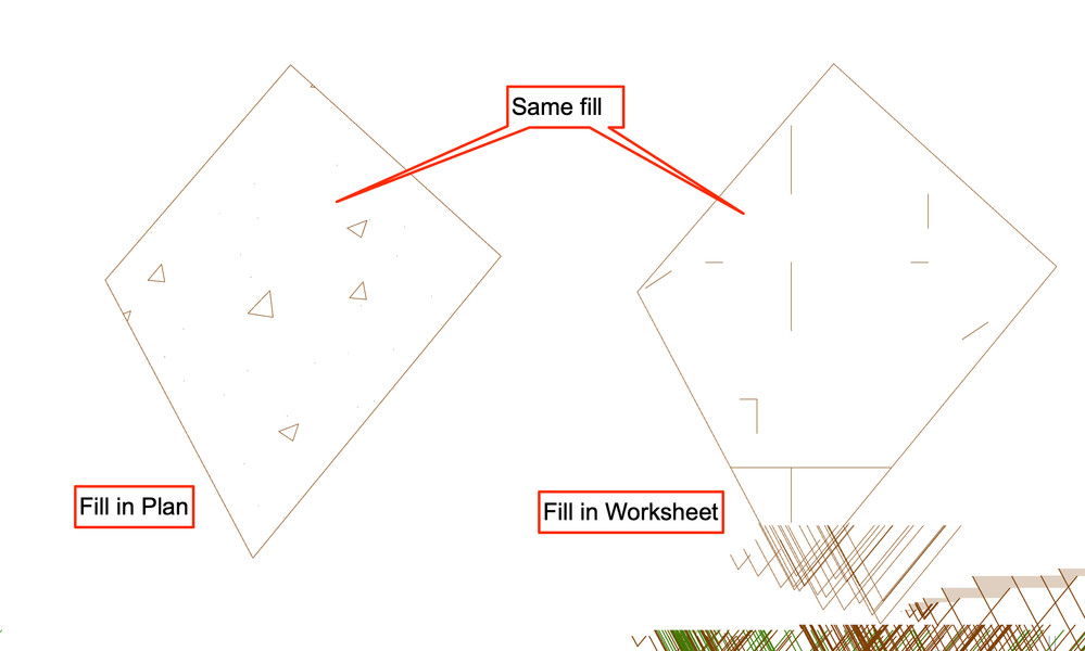 Has anyone had this happen or know how to fix it? When I zoom in and out of a worksheet, while close to a fill, the fill leaves graphic remnants behind. This does not happen in a story view. I have also noticed that some fills I have used in the past do not get resolved on the worksheet where as they look fine in the story view. I have attached some examples of the remnants and the comparison of a concrete fill in both a story and on a worksheet.