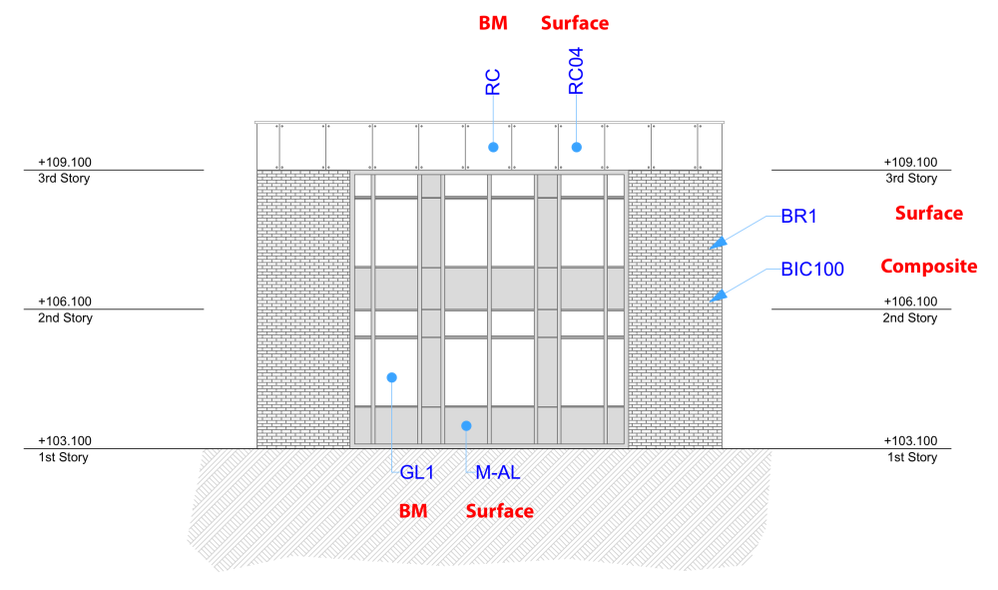 5., Repeat with the Curtain Walls as well, but there is no real need to create the BM/Composite for it, as the distinct panels would still show the main panel BM.