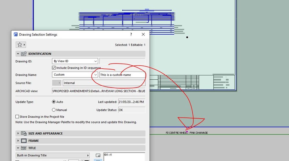 At the moment, the only thing I can do is turn the drawing title off and use text and lines, but I prefer to use the built in drawing title.
