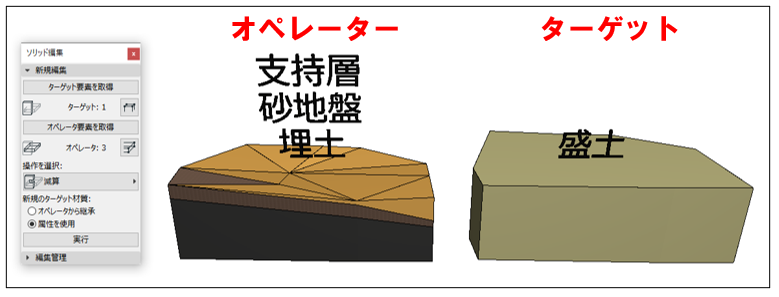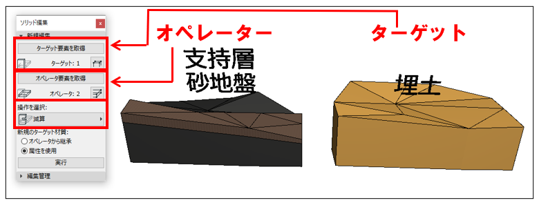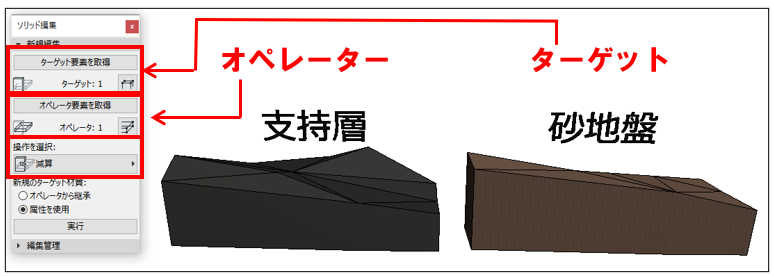 砂地盤モデルを支持層モデルと同じ場所に移動する減算が適用されます。