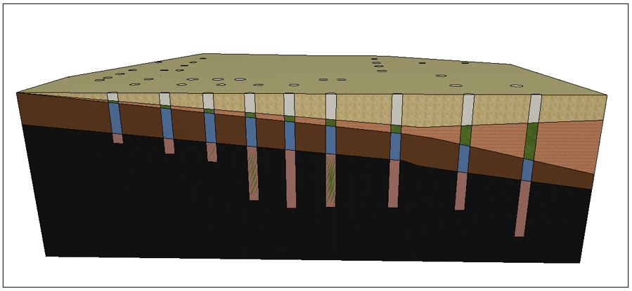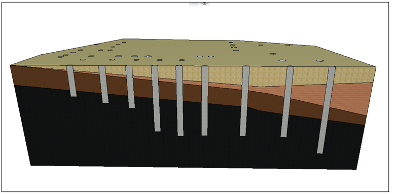 敷地作成→杭モデル作成→杭をソリッド編集(各層毎に個別作成・コピー)することで、杭掘削時の砂や汚泥、良質土のそれぞれを体積算出し、場内転用土、必要搬入土等の目安の数量として利用しています。
