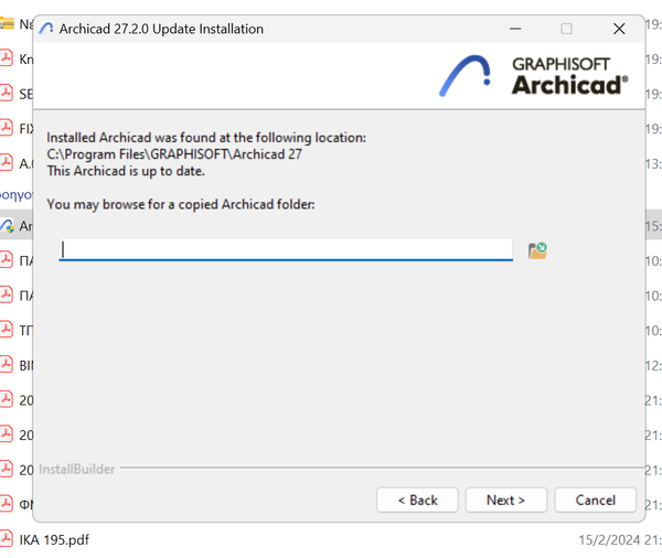 I downloaded and ran 27.2.0 but when I hit License information it says "Version: 27.0.0, Built number: 5001". I tried to run the Archicad-27.2.0-Update-INT.exe file again just in case I missed something during the installation procedure but that was not the case. This pops up