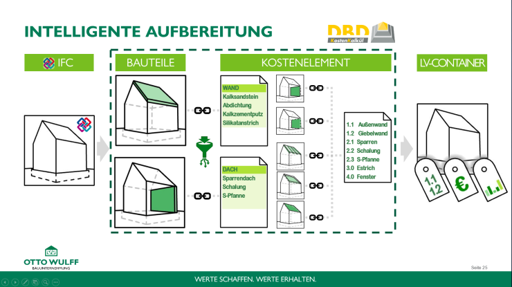 Unser Ziel ist nicht nur Mengen aus dem IFC zu erzeugen und diese händisch oder per Excel oder derartiges an die AVA/Kalkulation zu übertragen. Wir wollen aber auch keine Plugin-Lösung mit dem komischen R-Programm, weil wir openBIM wollen.