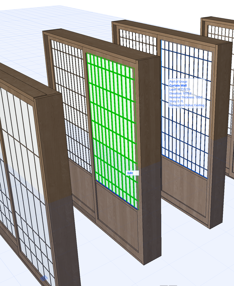 There was a need for creating many Japanese sliding doors. Tried to create custom objects/doors and windows using the curtain wall tool to save time(see the attached picture). I could group it and use it just fine, but they repeat a few times through the temple. Thus, tried to create objects and place them into openings, which worked just fine, but the next day, when I opened my saved project, all the curtain walls within the objects turned into a black block mess. Tried resaving the objects from original geometries again, but to no avail. I know I could turn everything into morphs, but through the design, I have to adjust the pattern A LOT. If anyone knows how to deal with this problem, please let me know!