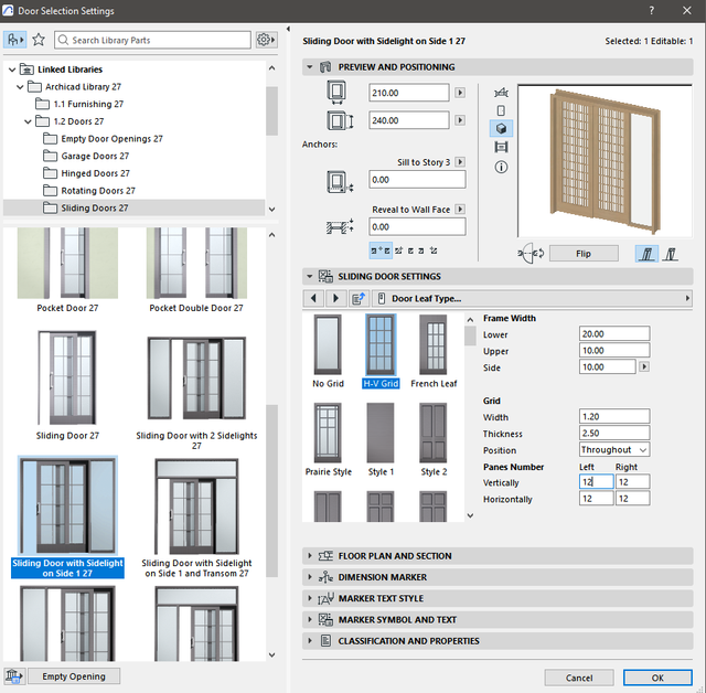 Why not do a grid system for the standard library door properties? And make a grid from there with the desired parameters