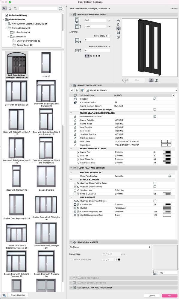 Additionally is there a way to set defaults such as no door linings, or no fills on plan etc.?