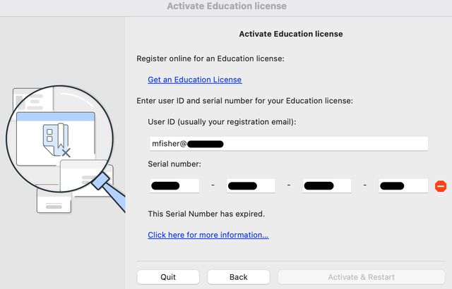 I was recently approved for the educational license, but when I go to activate it, it says the serial number has expired. Is there something I'm doing wrong? I've sent a request for support but have not received a response. Can someone help?