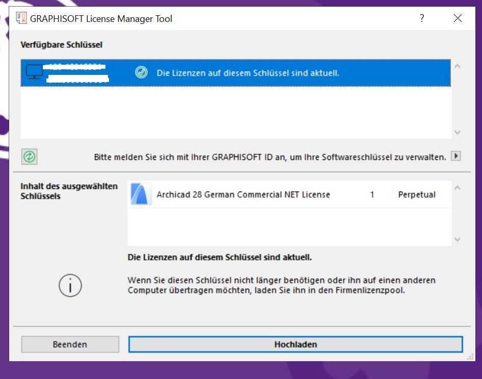 habe eine AC-28 Lizenz auf dem Server (Windows Server 2022-21H2). Nun will ich die Lizenz hochladen, um sie auf dem Notebook mitnehmen (und anwenden) zu können.