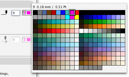 Both mm and points show up at the top of the pen selection pop up, see the image below.