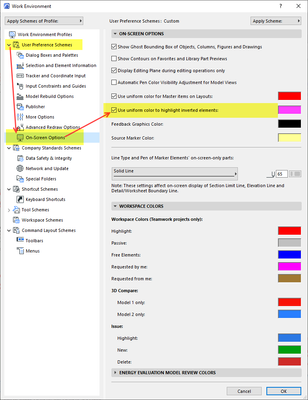 The pink (magenta) colour (set in the Work Environment) can mean the an element with top/bottom links to a storey has an invalid geometry (inverted geometry).