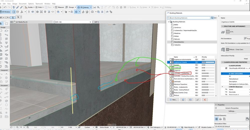 But even though the intersection priority of the cement filling is higher than the ceramic tile, when i do the baove operation the ceramic in between does not get out of the way (signed in blue line).