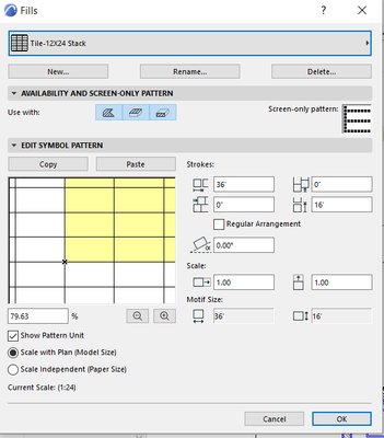 @kerbz Your highlighted pattern should be a single rectangle formed from 12" x 24" lines. (Your units are reporting in feet?). If you have used a fill then that will be used as the foreground rather than just the rectangular lines. When placing the fill check the foreground & background colours and also check they aren't changed by using a different pen set e.g. a blue background in one pen set may be black in others. Try placing the fill with a transparent background pen.