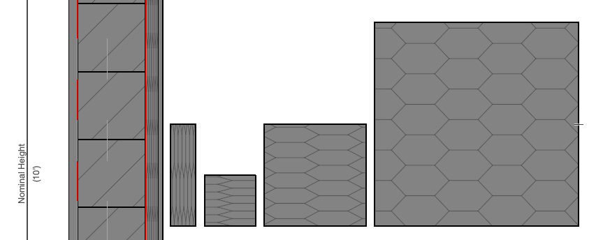 In Profile Manager, I use an Insulation Spray building material, but the same building material/fill changes when it is stretched (shown below).