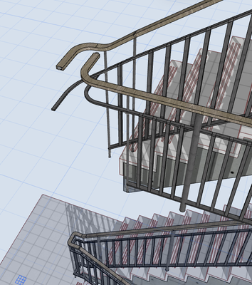 I am having trouble with the railing of the stairs. I want to connect two floors handrails but I don't know how to join them. In addition I want to know whether it is possible to place automatically the posts at the middle of the goings?