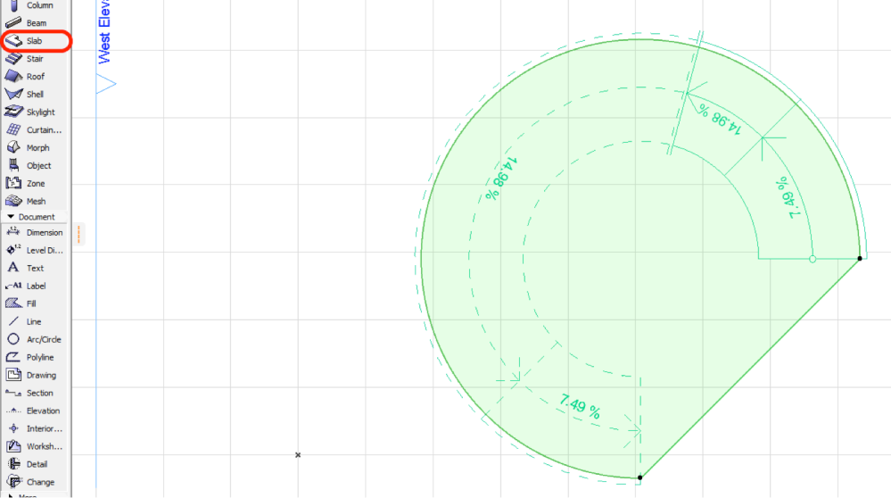 Switch back to floor plan (press F2), model a slab that can be used later to cut the ramp we copied in the previous step.