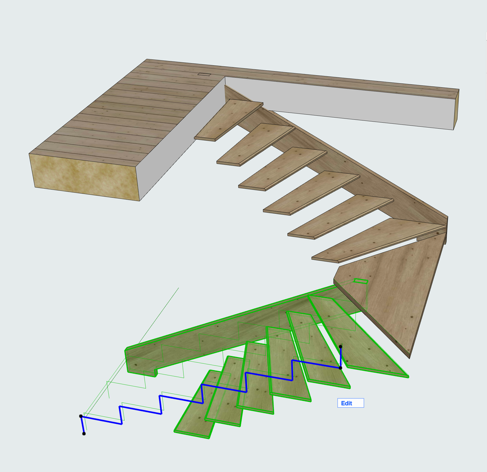 Cause you may model and move the steps with no reference to the blue line - but the sides follow the blue line no matter. And if I shrink the model by the blue line I also shrink all the steps. I thought maybe I could shrink the sides, and then the blue line would follow..