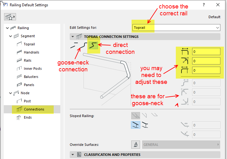 I'm struggling to get the 1000mm height at landing to connect with the 900mm high railing along the stair. Note that i have offset the railing 140mm into the landing to allow for the 1m transition. I've attempted to model the rails seperately but this did not work, I've also atempted to manipulate the nodes but it didnt work. Any tips on how to achieve this would be appreciated