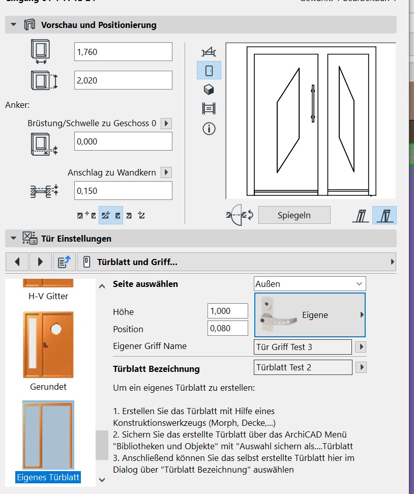 ich habe mir ein eigenes Türblatt erstellt. Allerdings ohne feste Maße für den Lichtausschnitt sondern nach Augenmaß. Kann man die Türblattgröße exakt ermitteln? Rohbaumaß ist bekannt. Somit kann ich den Lichtausschnitt exakt modellieren: