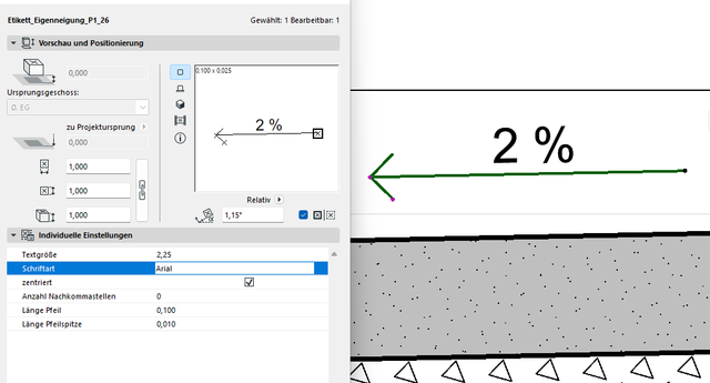 Die Angabe der Dachneigung enspricht ja der Neigung der Falllinie (meine ich...) somit ist der angezeigte Wert ja "der richtige" und wohl meistens der, den "man braucht"... das mit der automatischen Ausrichtung einer Beschriftung und einem damit verbundenen Pfeil wäre natürlich ein zusätzlich Komfort... und daher eine sehr schöne Sache...