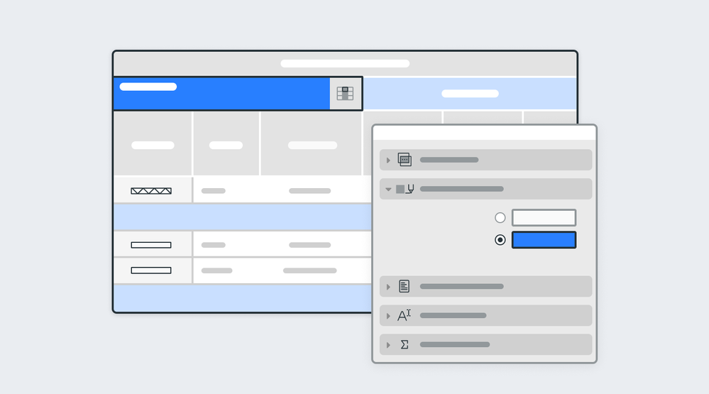- Ein-/Ausblenden von Einheiten für Summen und Gesamtsummen sowie Anpassen eines Präfixes und Suffixes für die Anzeige einer benutzerdefinierten Einheit