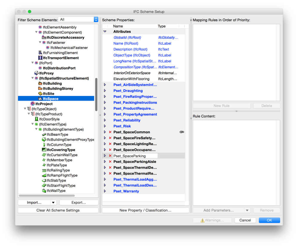 Note: It is NOT possible to map element parameters to element parameters, object properties to object properties directly or to map an IFC property to another IFC property. Element parameters and object properties however can be mapped into IFC properties.
