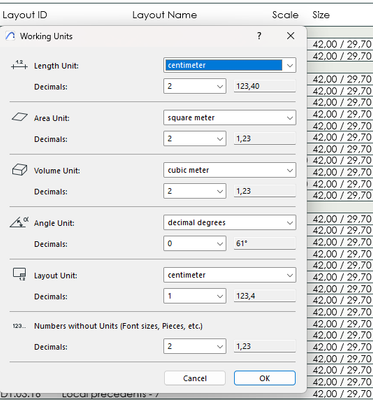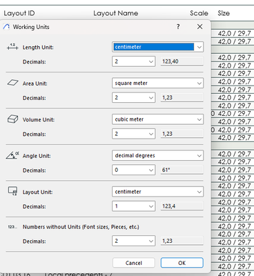 We have a problem with working units in one of our projects. The layout unit is set to cm and shows only one decimal. When I first open an index for layouts, it shows the paper size like it's set in the working units. But as soon as I opened another index sheet (which was duplicated from the one mentioned before, and I changed a few criteria afterward), the decimals for the paper size changed to two.