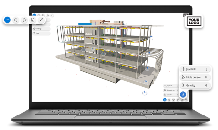 - Caminhe livremente em seu modelo 3D com opções de velocidade personalizadas.